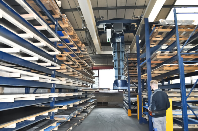 Für die Dettwiler AG haben wir eine smarte innerbetriebliche Logistiklösung rund um die Blechstrasse realisiert. Ein 3.2 t Stapelkran und ein 270° - Säulenschwenkkran mit selbstsaugender Vakuumaufnahme machen das Rüsten von ganzen Paletten und Einzelplatten für die Flachbettlaseranlage effizient.