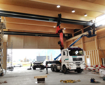 Zwei Einträger-Brückenkrane in zwei Tagen transportiert und fixfertig montiert.
