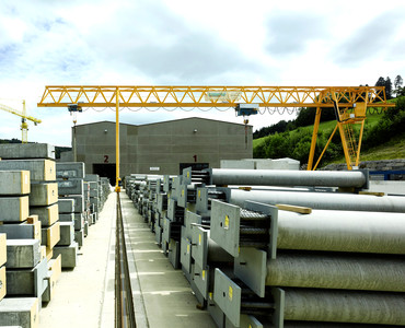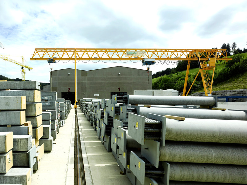 Der Portalkran fährt auf dem Boden, wobei die Kranbrücke auf den mitfahrenden Portalstützen aufliegt. Er ist ebenfalls als Einträger- oder Zweiträger-Ausführung realisierbar. Portalkrane haben besonders bei Aussenanlagen den Vorteil, dass keine Stahlbauten wie Stützen und Kranbahnen nötig sind – das macht ihn entsprechend kostengünstiger. Und je nach Schienenausführung kann die Kranschiene beispielsweise mit LKW’s überfahren werden. Allerdings muss die Gefahrenzone entlang der Fahrgasse des Kranfahrwerkes und der mitfahrenden Portalstütze mit Sicherheitsmassnahmen ausgerüstet werden.